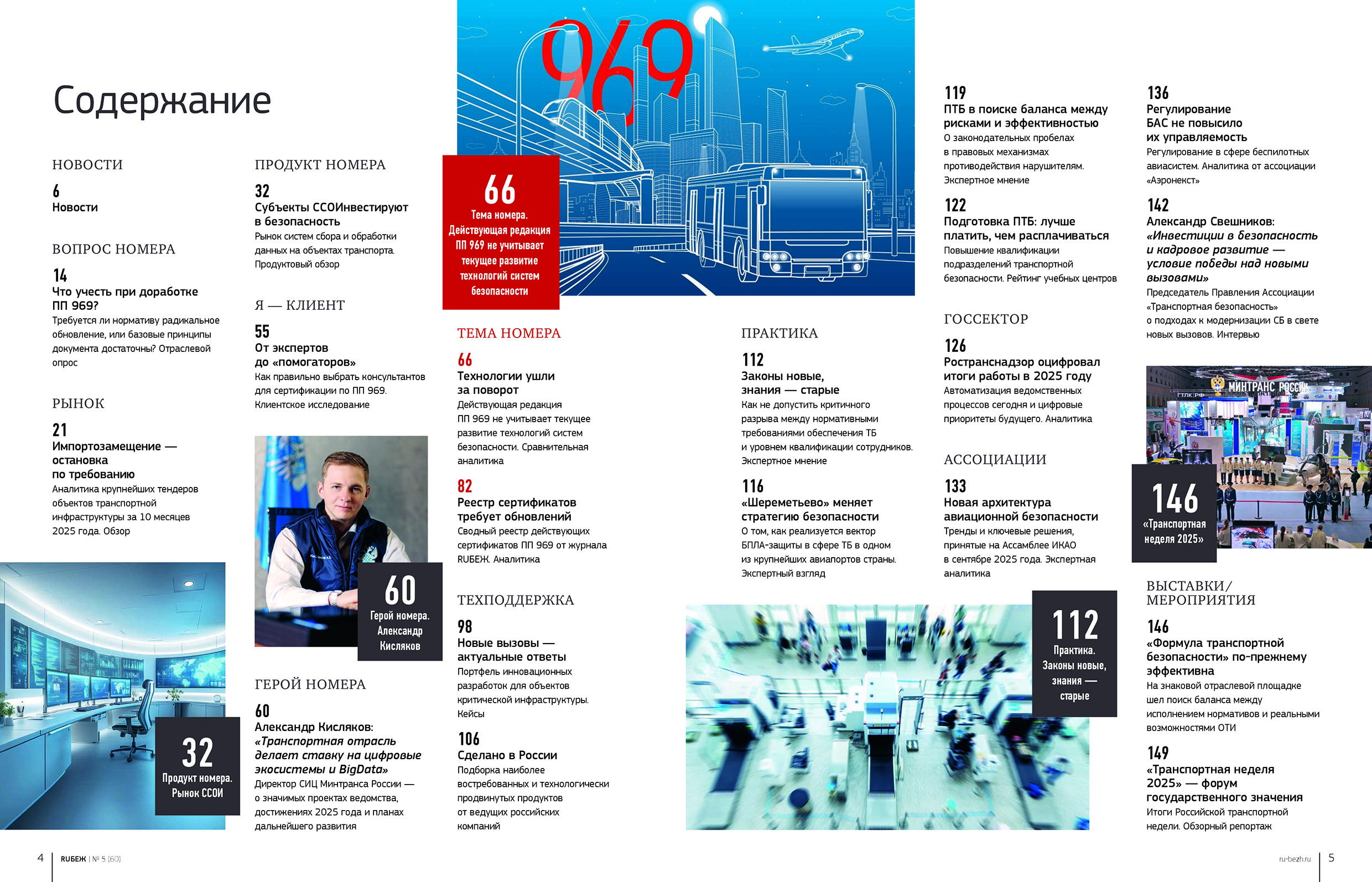 Завершает номер блок публикаций партнеров. В него вошли интервью председателя правления Ассоциации «Транспортная безопасность» Александра Свешникова о необходимости инвестиций в безопасность и репортажи с главных отраслевых площадок года — конференции «Формула транспортной безопасности» и Международного форума «Транспортная неделя», где регуляторы и бизнес искали баланс между исполнением норм и реальными возможностями.