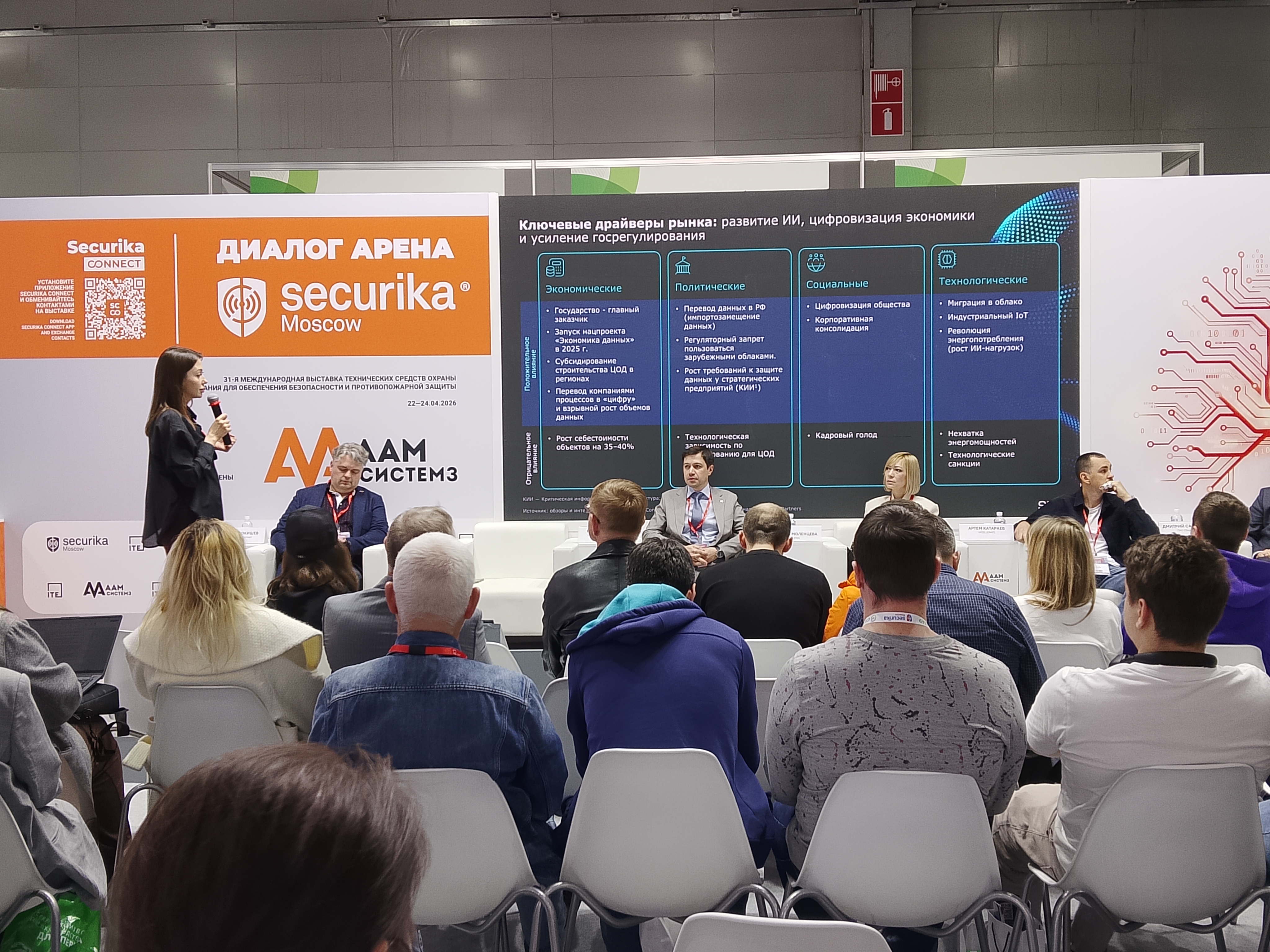 24 апреля, в третий день выставки Securika Moscow 2026, на площадке «Диалог-Арена» состоялась сессия на тему «ЦОД в российских реалиях: устойчивость, безопасность, трансформация». В зале собрались проектировщики, эксплуатанты, инженеры, охрана первого контура, топ-менеджеры, те, кто строит, и те, кто отвечает за то, чтобы объекты не сгорели, не разбились дроном и не встали из-за нехватки мегаватт.