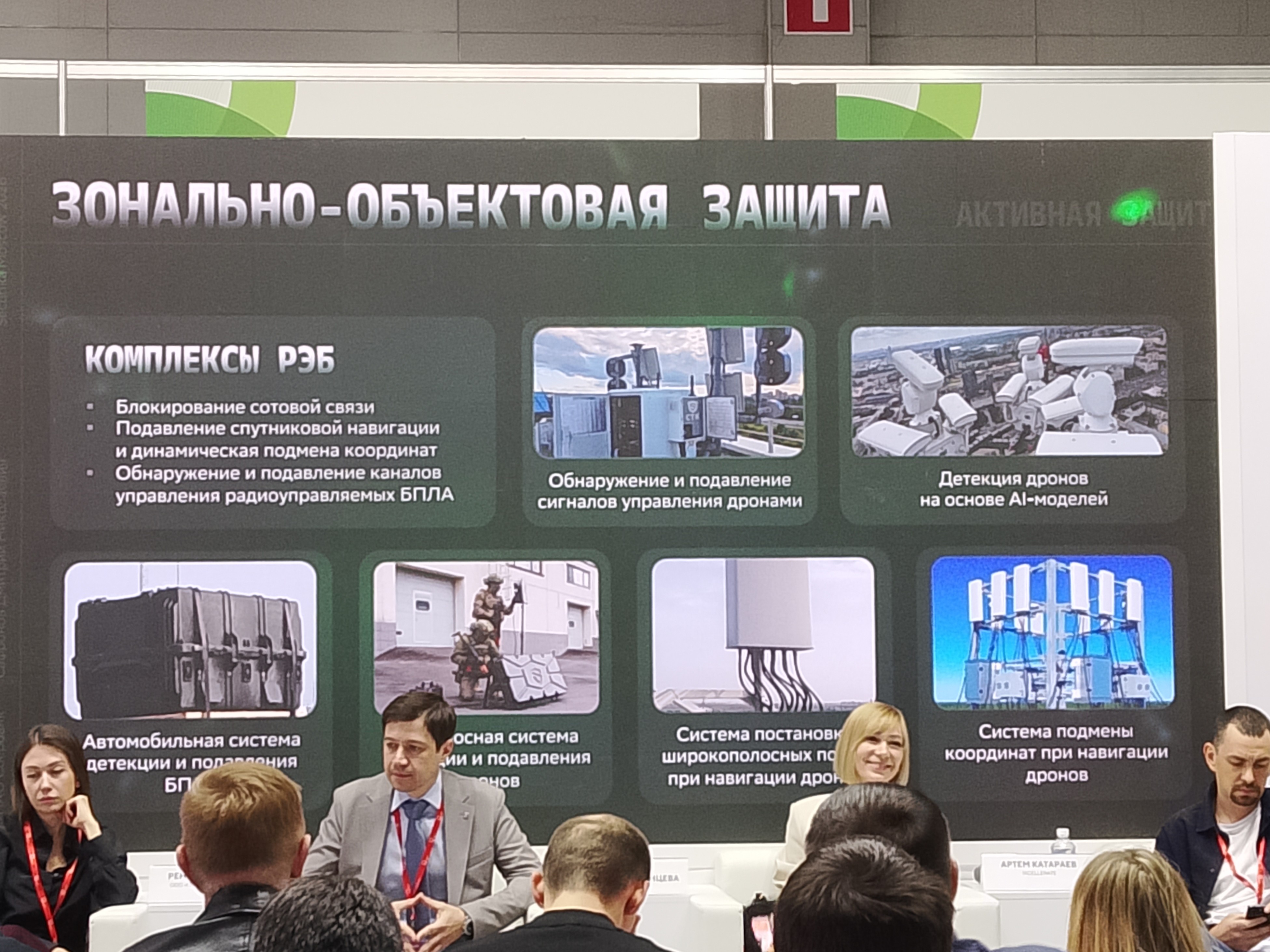 Дмитрий Сафронов рассказал, что прежде всего нужна физическая защита, практика показывает, ничего нет надёжнее защитных стен, решёток, сеток. Всё, что может долететь, что не успевают сбить, зависает на сетках, и ущерб становится существенно ниже, чем мог бы быть от прямого попадания, считает спикер.