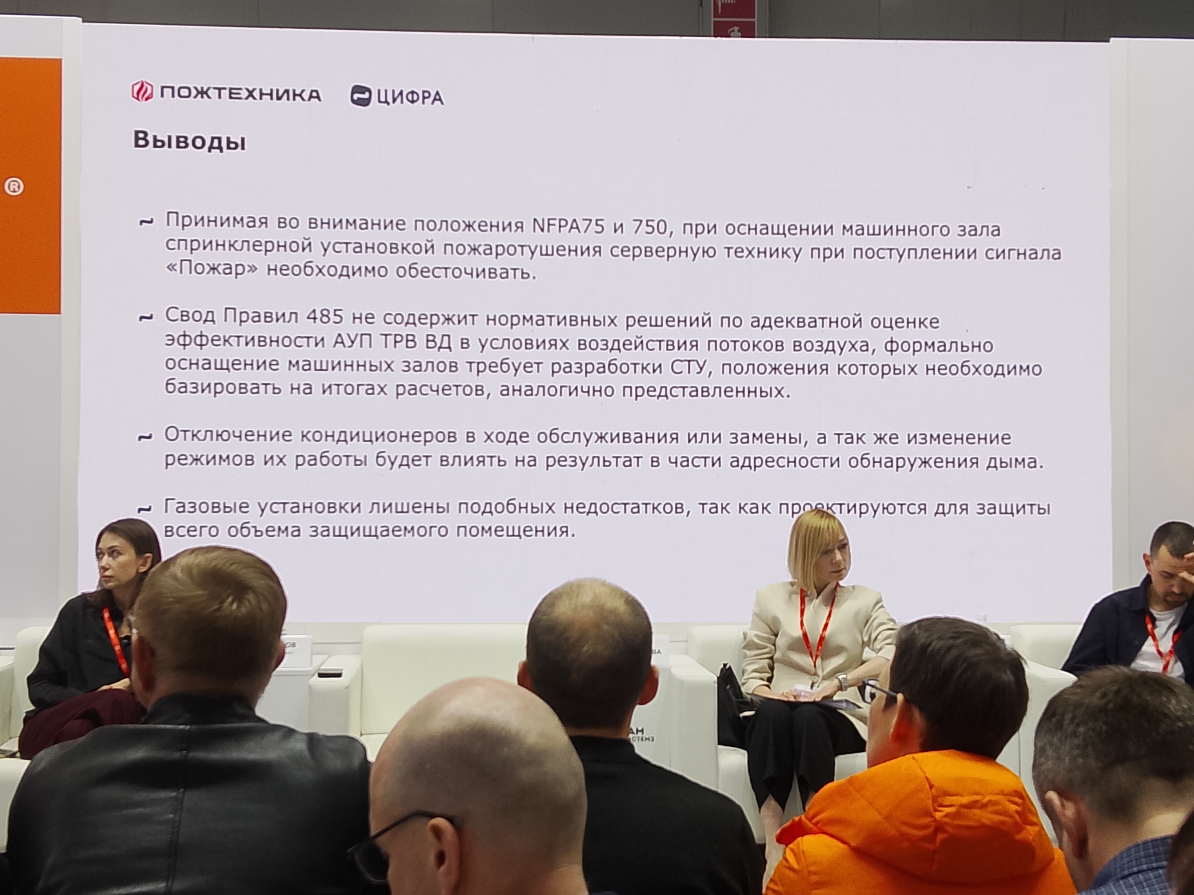 Белла Смоленцева, ведущий эксперт по системам физической и пожарной безопасности компании «К2ТЕХ», у которой 19 лет опыта, десятки ЦОД, за последние три года — семь крупных дата-центров, представила тему «Безопасность в ЦОД: экспертиза и комплексность».