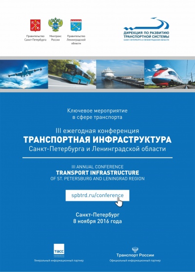 III Ежегодная конференция «Транспортная инфраструктура Санкт-Петербурга и Ленинградской области» пройдет в г.Санкт-Петербурге 8 ноября 2016 года. Мероприятие призвано обеспечить конструктивный диалог представителей федеральных органов государственной власти, органов исполнительной власти субъектов РФ, профессиональных ассоциаций и бизнес сообщества по актуальным вопросам развития транспортной отрасли.