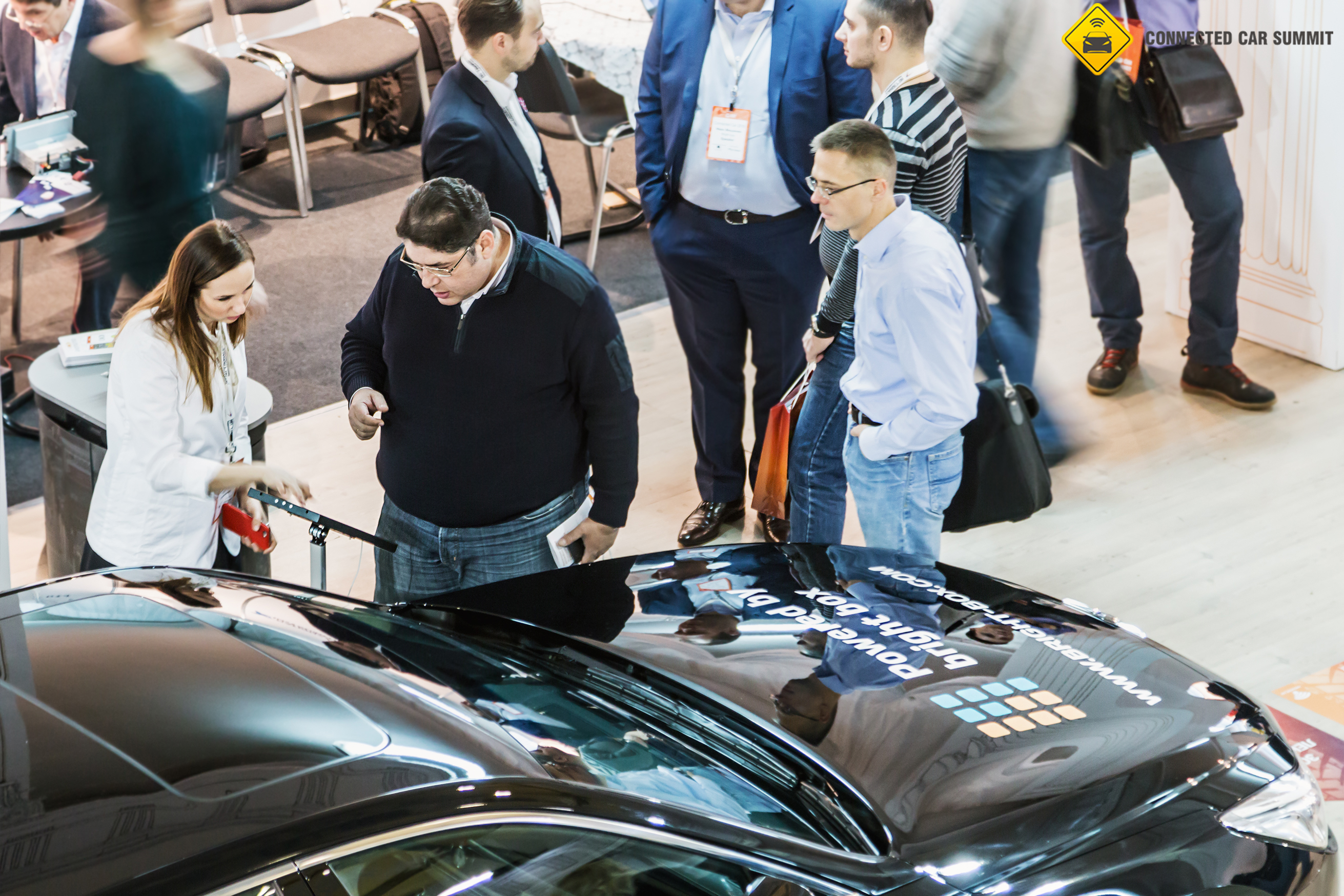 В выставочной зоне продемонстрировали передовые разработки в сфере подключённых автомобилей. В частности, новейшее оборудование для каршеринга презентовали представители «Делимобиль» и Rightech. Много людей собиралось возле стенда T-Tronic, чтобы протестировать платформу-агрегатор услуг для диагностики и ремонта машин. Более того, именно здесь представители компании вручали умные гаджеты победителям конкурса в соц сетях.