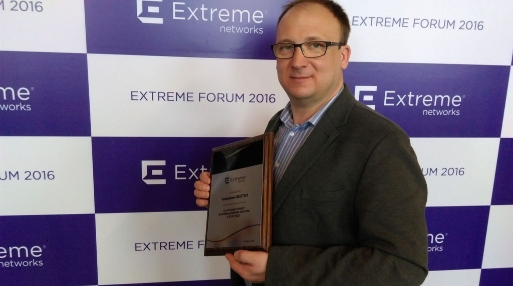 На прошедшем 3 марта форуме Extreme Networks компания БЕЛТЕЛ удостоена награды за лучший проект 2015 года в промышленном секторе. Награду получил Александр Абаджиди, директор по развитию бизнеса БЕЛТЕЛ.