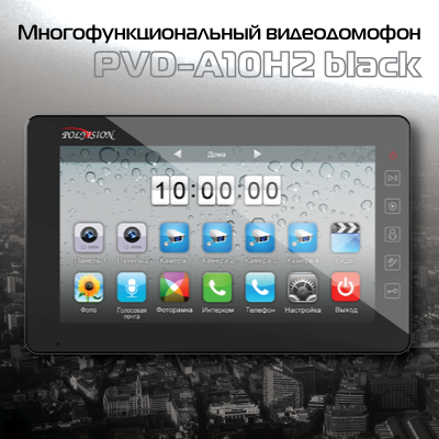 Polyvision представляет новый монитор видеодомофона премиум класса PVD-А10H2 black с сенсорным десятидюймовым цветным ЖК-дисплеем.